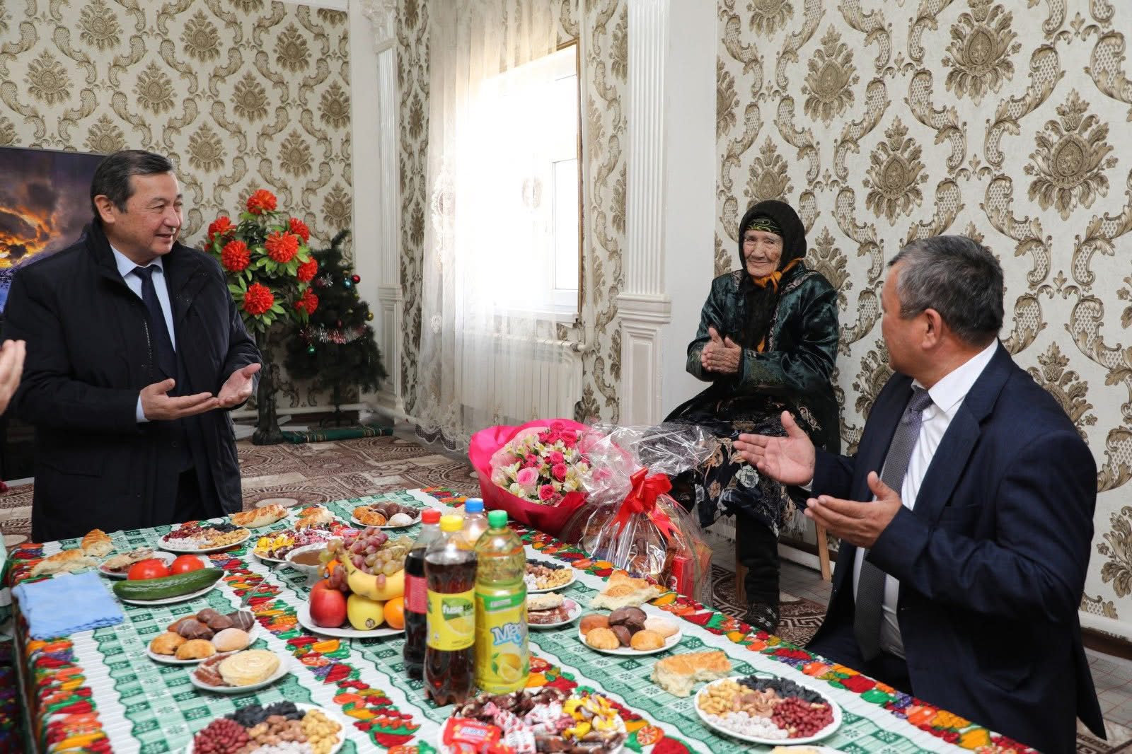 В честь Международного женского дня аким Мактааральского района Бақыт Асанов посетил дом 100-летней жительницы села Гүлістан Достыкского сельского округа Амангүл Мамырова и поздравил её с праздником.